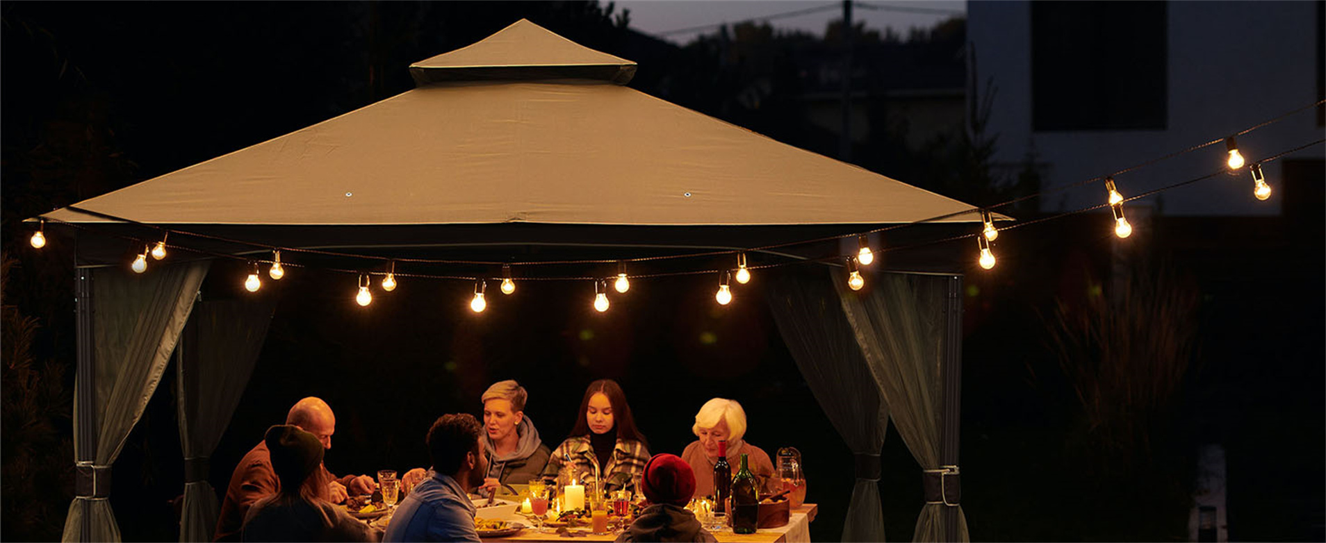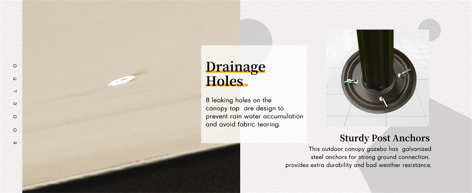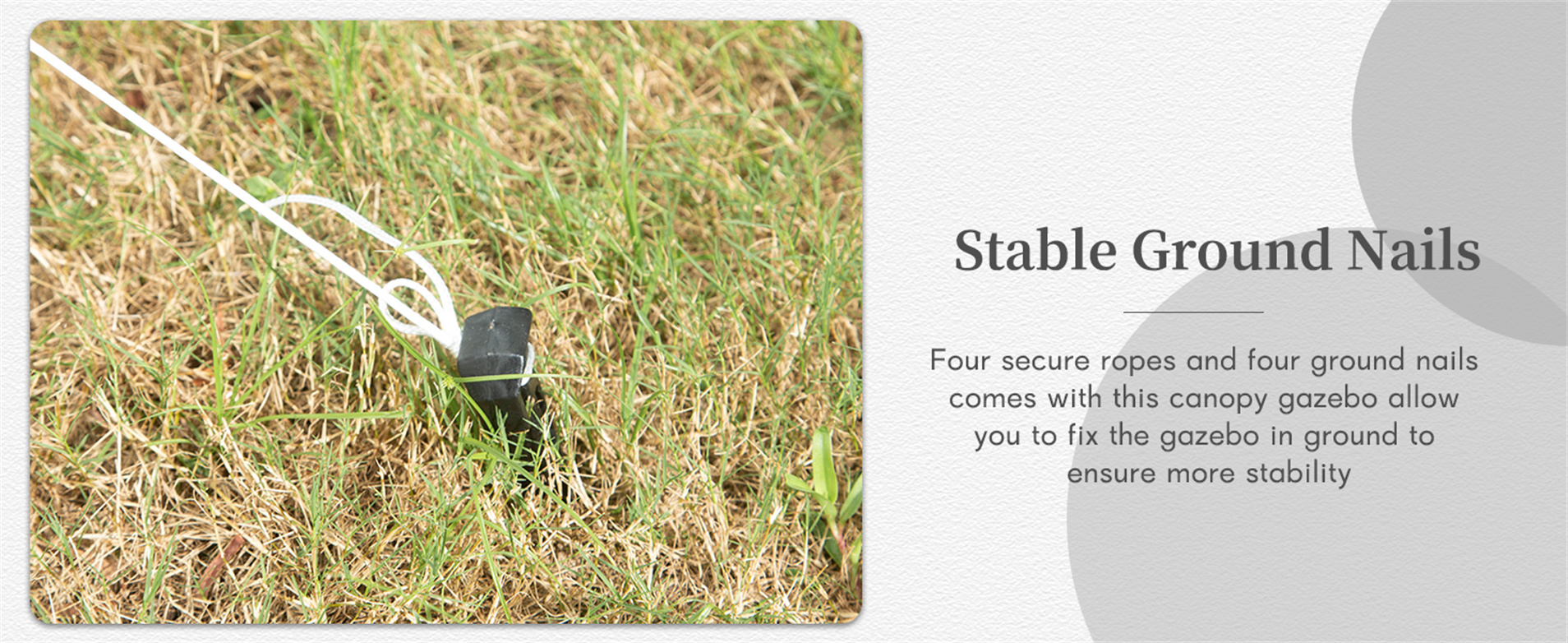 - EASY SET UP: There are eight metal rods on the canopy, which support the entire canopy. And the gazebo also comes with cords and ground nails to help fix,further ensuring stability.