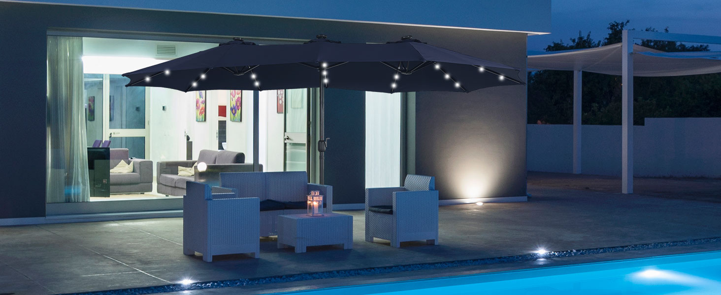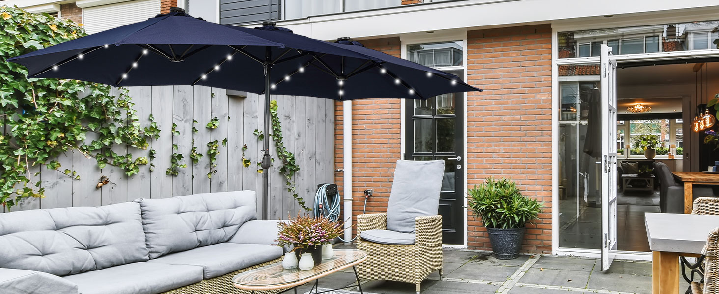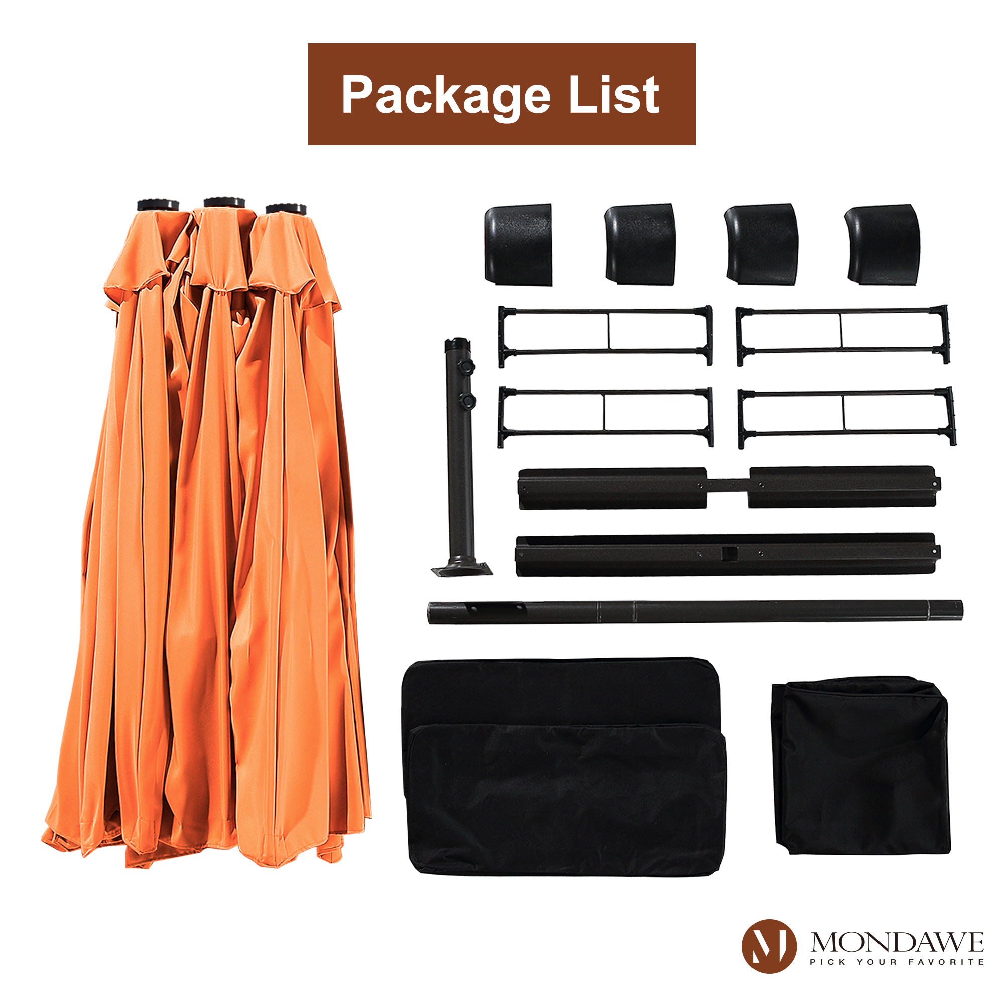 Extra-large Patio Umbrella: With a 15 ft. x 9 ft. rectangular double-sided canopy, this patio umbrella provides a large shading area of about 133 square feet when fully open. It is perfect for protecting you and your guests from the hot sun during outdoor activities.