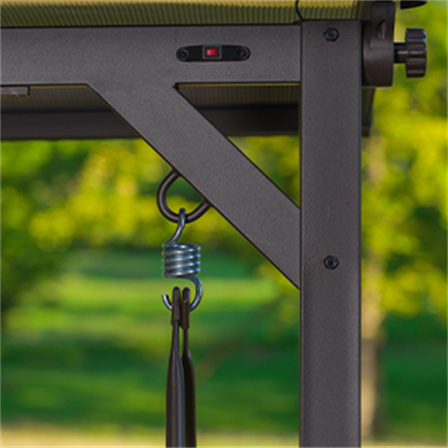 With a rotary knob, the angle of this porch swing canopy can be adjusted to protect you from direct sunlight in different directions and provide protection against UV rays.