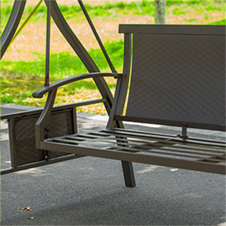 5. Enhance your outdoor entertainment experience with our convenient foldable side table. Whether you're sipping cocktails or diving into a good book, our swing's aesthetically pleasing design and built-in tables offer both style and functionality.