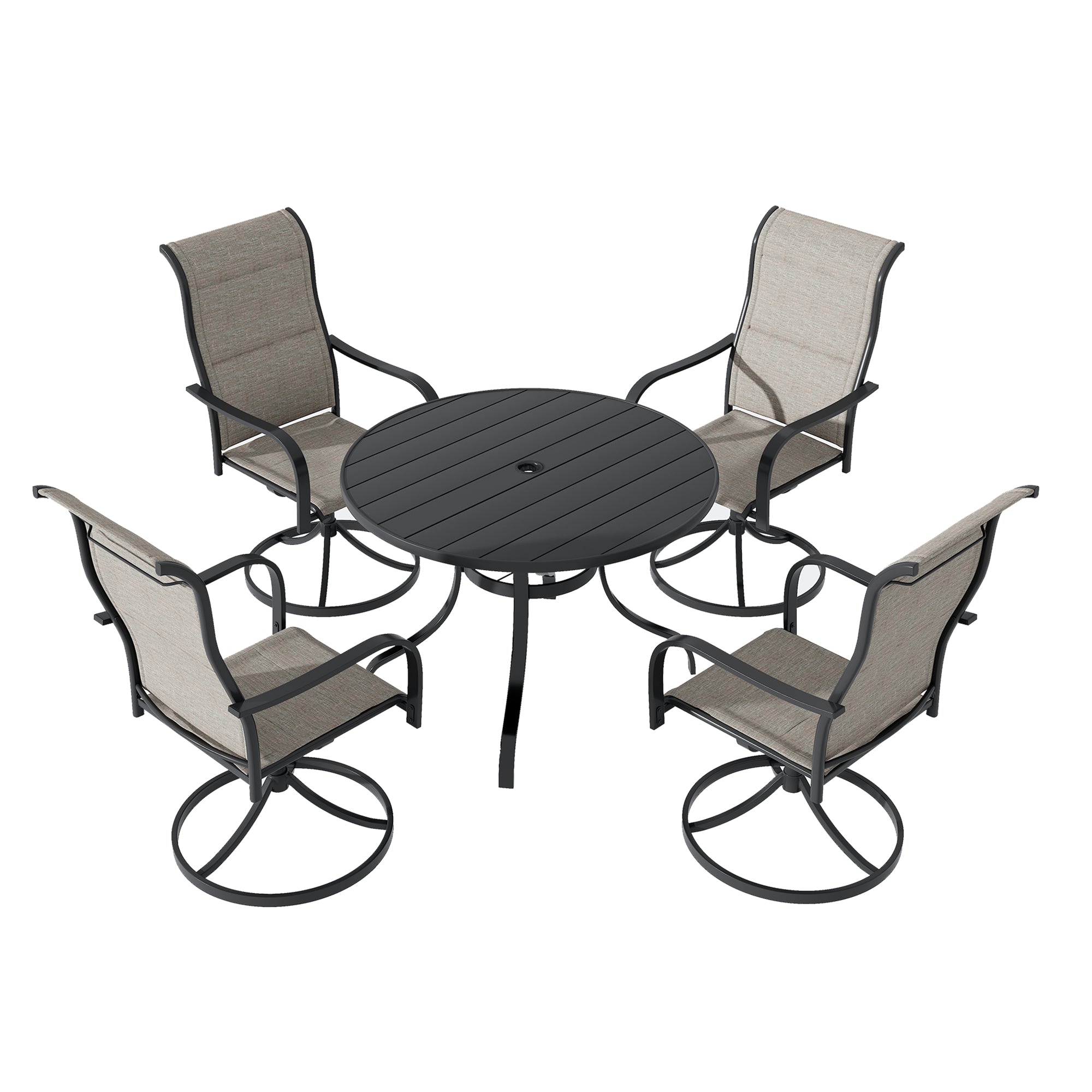 5-Piece Steel Frame Patio Dining and Chair Set for any outdoor space,4 Swivel Chairs + 1 Table(Free outdoor umbrella)
