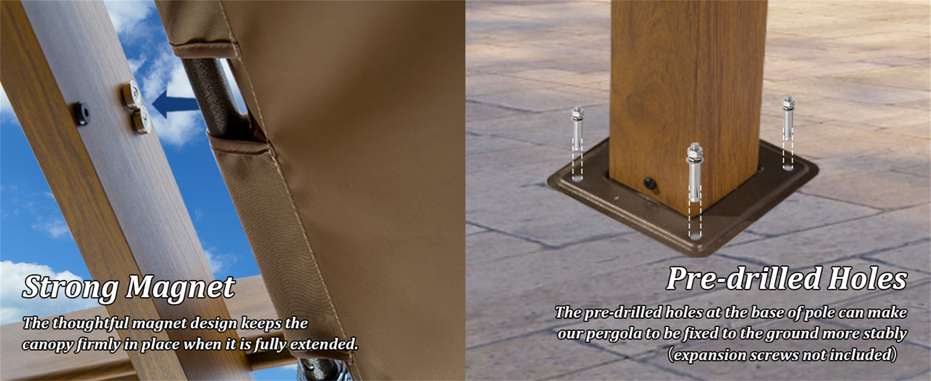 - Ingenious Stability, Unwavering Confidence: Designed with a clever magnet system and extra straps, our pergola stays secure even in windy conditions, offering peace of mind for uninterrupted enjoyment of your outdoor sanctuary.